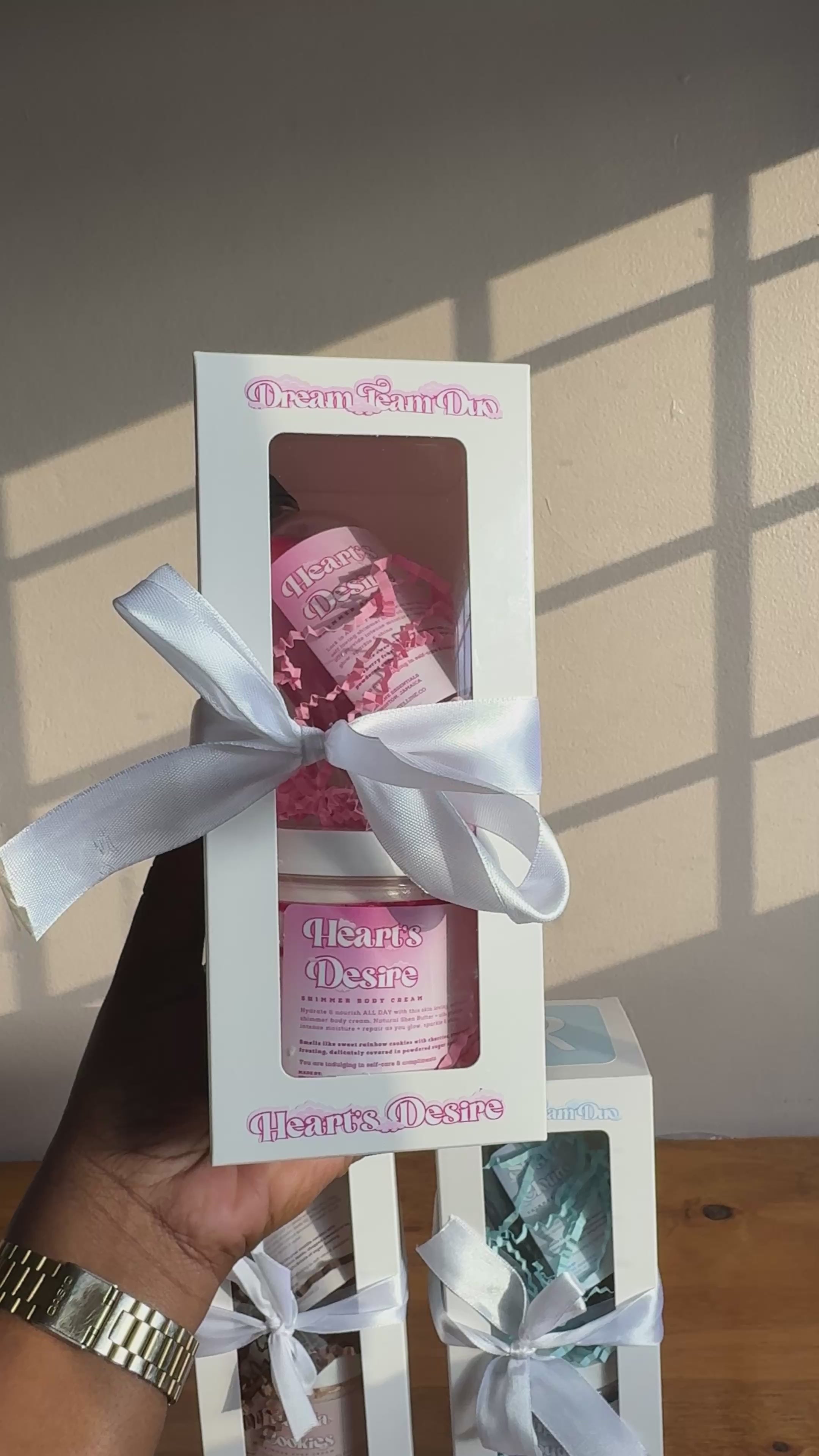 The Dream Team Duo is at it highest form with amazing textures and ingredients, improving skin health and your confidence. Immerse yourself in a captivating blend of powdery cookies, sweet cherries, and strawberry frosting, delicately covered in powdered sugar and candy toppings. Heart's Desire is feminine, sweet and absolutely addicting to smell. It's not overpowering at all and would be a great middle layer for your scent profile, it would pair well with sweet candy or powdery scents. This gentle yet sweet scented body care set is your daily affirmation of the love you deserve.